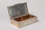 PUIFORCAT orfèvre. BOITE à cigarettes en argent à larges rainures à deux compartiments, intérieur bois....