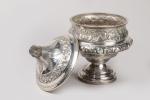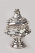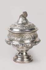 VASE couvert en argent de forme balustre à godrons, feuilles d'acanthes, fretel à décor de...