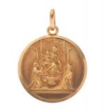 Importante MEDAILLE de la Vierge à l'Enfant entourée de mariés en or jaune 750/°°. D. 2.7 cm. Poids: 8.5 g.