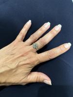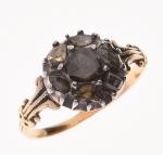 BAGUE "Fleur"en or jaune 750/°° et argent 800/°° serti de diamants taillés en rose. Travail...