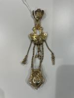 CHATELAINE en or jaune 750°/°° à décor émaillé. Époque XIXème siècle. Poids brut : 41,6 g.
