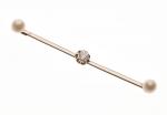 BROCHE barrette en or gris 750/°°centrée d'un diamant de taille ancienne de 0.40 ct et perles boutons de culture. travail français, vers 1900. L. 8 cm. Poids brut :5.3 g.