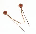 Paire d'EPINGLES en or jaune 750/°° et corail reliées. Travail français du XIXème siècle. Poids brut :5.8 g.