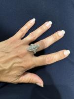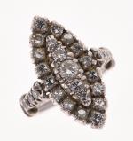 BAGUE navette en argent 800/°° entièrement serti de diamants taillés en brillant, épaulement de diamant...