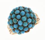 BAGUE "Cocktail" en or jaune 750/°°et turquoises. Manque 3. Vers...