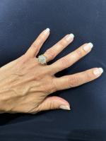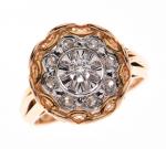 BAGUE "Marguerite" en or jaune 750/°° et platine 850/°°, pavée de diamants. Tour de doigt :52. Travail français, vers 1950. Poids brut :5.7 g.