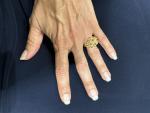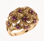 BAGUE dôme en or jaune 750/°° et rubis à décor de fleurettes. Vers 1950. Tour de doigt :51. Poids brut : 9.4 g.