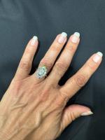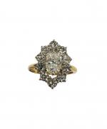 Une BAGUE marquise en or jaune et gris ornée d'un diamant ( 7,6 x 5,4 x 3,8 légère fluorescence) d'environ 1 carat, entourage de forme ovale de 10 diamants taille brillant totalisant 1,7 carats environ.