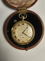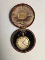 LONGINES. MONTRE de gousset en or. Vers 1930. Poids brut : 59,70 g. Dans un écrin en cuir de la maison Dejouy. Fonctionne à l'exposition.