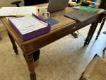 BUREAU plat en noyer, ouvrant à trois tiroirs. Epoque XIXème siècle. 80 x 138 x 80 cm.