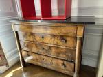 COMMODE en noyer à colonnes encagées, dessus de granit belge....