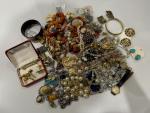 Ensemble de BIJOUX fantaisie : colliers, bagues, montres, pierres fines, ambres et divers. Lots vendus...
