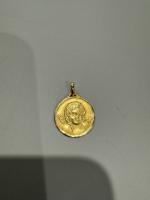 Médaille en or jaune 750°/°° représentant un ange. Signée AMENGAL. Poids 3.7 g. Lots vendus...