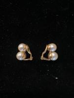Paire de CLIPS d'oreille en or jaune 750°/°° décor de deux perles