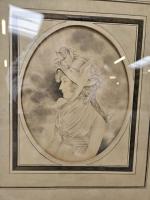 École du XIXe siècle "portrait de jeune fille au chapeau" Dessin et pastel sur papier. Légères piqures.