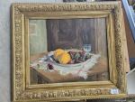 A. Willemin "Nature morte aux cerises et oranges" Huile sur toile signée et datée 24.7.48 32 x 39cm