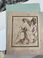 Ensemble de GRAVURES, photographies et une aquarelle réhaussée signée F....