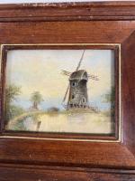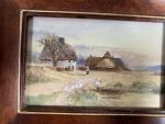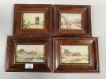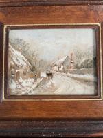 École XIX/XXe Paysage sous la neige et le moulin la ferme aux oies (paire d'aquarelle) Ensemble...