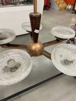 Lustre à cinq bras de lumière en métal doré. Style Art déco. H : 79 x 76cm