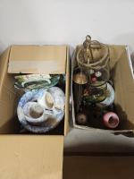 Lot de faïence, porcelaine, miroir, cache pot en barbotine à...