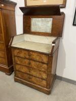 COIFFEUSE scriban en placage d'acajou flammé ouvrant en partie basse...