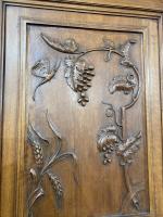 Buffet deux corps en noyer sculpté à décor de pampres de vigne. Époque XIXe siècle. H : 250 x 138 x 58cm Petites usures