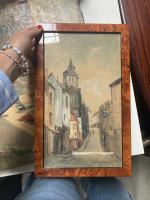 Écoles du XXe siècle "Ruelles" et "cathédrale" Aquarelles Signées en...
