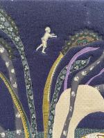 École moderne Conque et jeune garçon PATCHWORK en tissu portant un monogramme CCIAU ou EIAU ? daté dans la composition 1973 (usures)