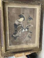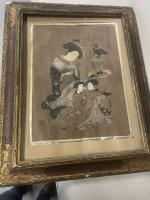 Gouache et aquarelle sur papier, représentant une jeune femme et enfants, jouant au go. 51 x 37cm à vue