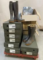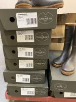 LE CHAMEAU, ensemble de 32 paires de BOTTES basses Anjou, marron foncé ; 7 paires de BOTTES basses Anjou, vert foncé ; 3 paires de BOTTES Anjou Evo Néo, une paire de BOTTE Anjou 3.