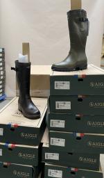 AIGLE. Ensemble de 15 paires de BOTTES Terra Pro Vario, couleur brun et 24 paires de BOTTES Dartan Pro, couleur kaki du 41 au 46.