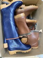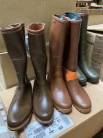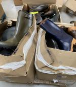 AIGLE. Important lot de BOTTES de divers modèles, dont Chambord Pro 2 vertes (12 paires), Chambord Pro 2 ambré (34 paires), Tancar Pro (7 paires). On y joint environ 90 paires de bottes modèles divers.