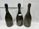 3 Bouteilles Champagne Dom Perignon, étiquettes abimées.