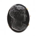 BROCHE en métal doré ornée d'un camée en jais à décor d'un profil de femme. Poids brut : 31,2 g.