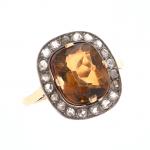 BAGUE en or 750 °/°° sertie d'une citrine cognac entourée de diamants taillés en rose. Poids brut : 5,2.