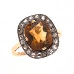 BAGUE en or 750 °/°° sertie d'une citrine cognac entourée de diamants taillés en rose. Poids brut : 5,2.