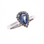 BAGUE en or gris 750°/°° ornée d'un saphir poire pesant 0,8 ct environ, entourage de diamants. Poids brut : 4,3 g. Tour de doigt : 54,5.