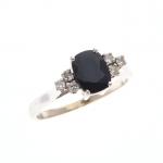 BAGUE en or gris ornée d'un saphir Siam épaulé de 6 diamants taille 8/8. Poids brut : 2,4 g. Tour de doigt : 50.