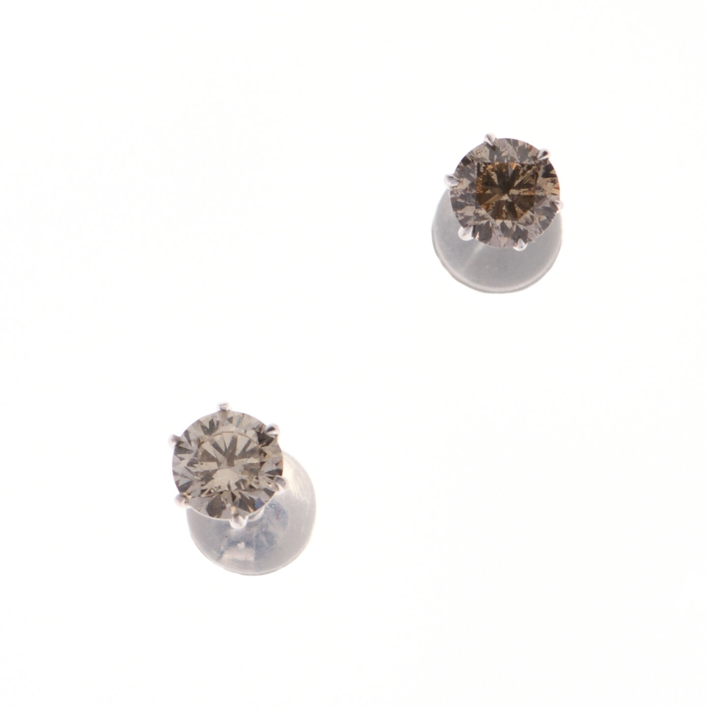Paire de PUCES d'OREILLES en or gris 750 °/°° ornées de diamants totalisant 0,5 ct environ. Poids brut : 0,7 g.