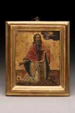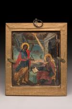 Icône biface figurant l'Annonciation et un saint agenouillé (Élie ?).