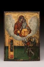 Icône de la Très Sainte Théotokos surmontant Saint Spiridon dans son reliquaire et Saint Jean...