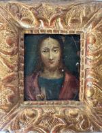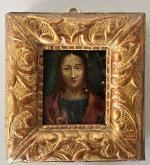 Peinture sur bois. Petits manques. Cadre en bois doré . École italienne du XVIIIe siècle. H. 15 x L. 14 cm (cadre). MC