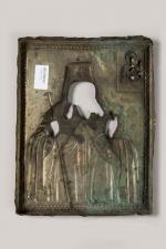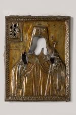 Oklad en cuivre pour une icône de Saint Dimitri Métropolite de Rostov.