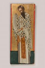 Icône de Saint Basile le Grand. Tempera et or sur bois. Accidents, fente et usures. École grecque, XVIII-XIXe siècles. H. 81 x L. 33 cm. MC