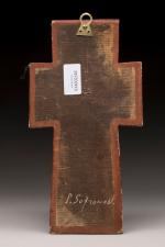 Croix orthodoxe figurant la Crucifixion, signée au dos « P....