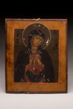 Icône de la Mère de Dieu des Sept Douleurs. Tempera sur bois. Légers manques. Russie, vers 1800. H. 25 x L. 10,5 cm. MC