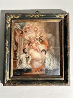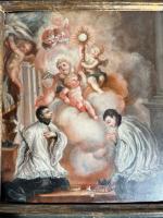 Ecole BOLONAISE du XVIIIe siècle, entourage de Luigi CRESPI L'adoration de l'Hostie Panneau 26 x 22,5 cm RM