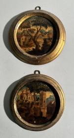 ECOLE ITALIENNE du XIXème siècle. Deux paysage en tondo. D. 11 cm.