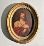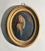 ECOLE ITALIENNE début XIXème siècle. Vierge et Christ. Huile sur panneau ovale. 17 x 13 cm.
