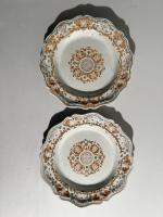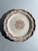 PLAT accidenté et deux assiettes en faïence polychrome à forme...